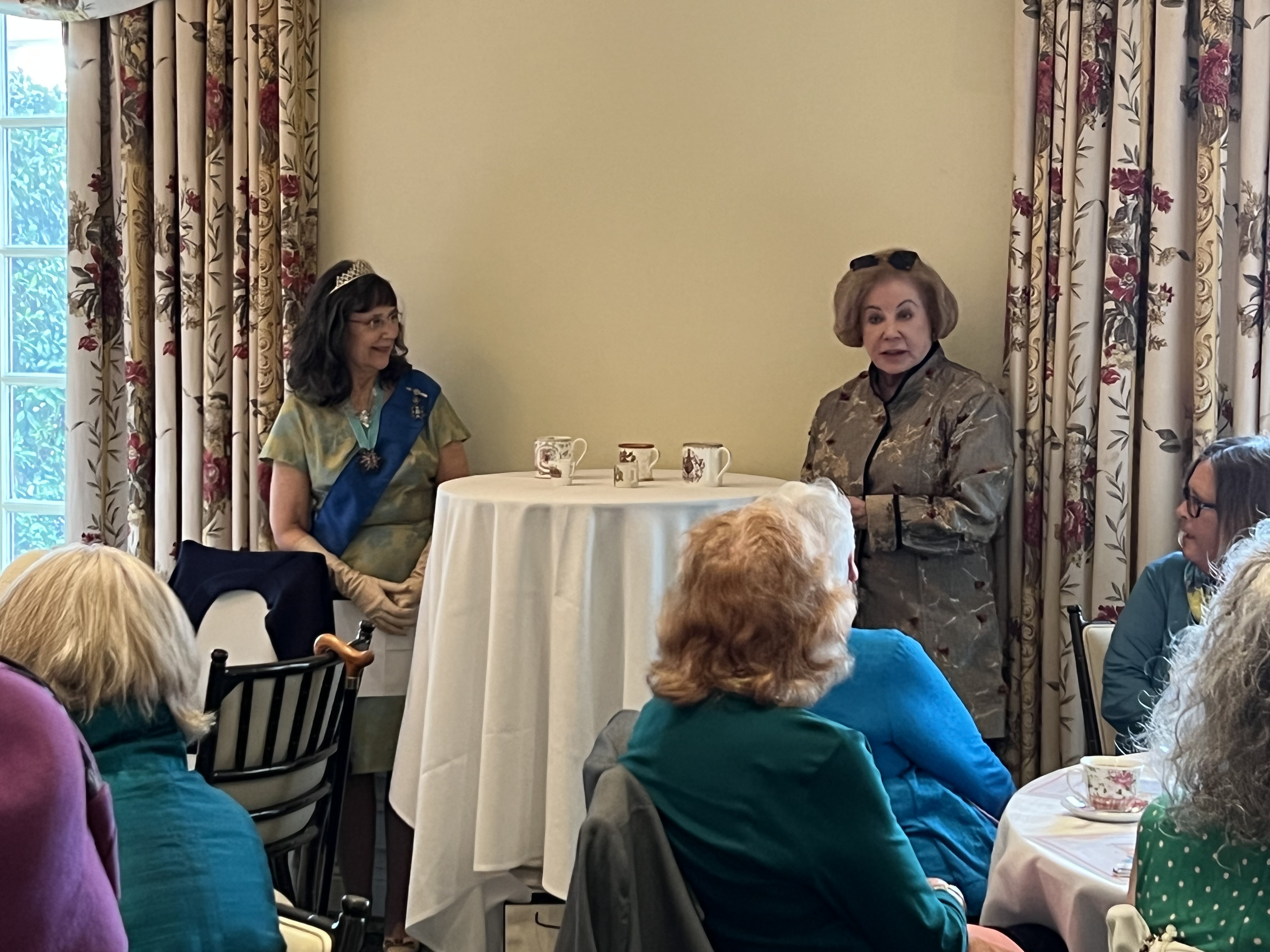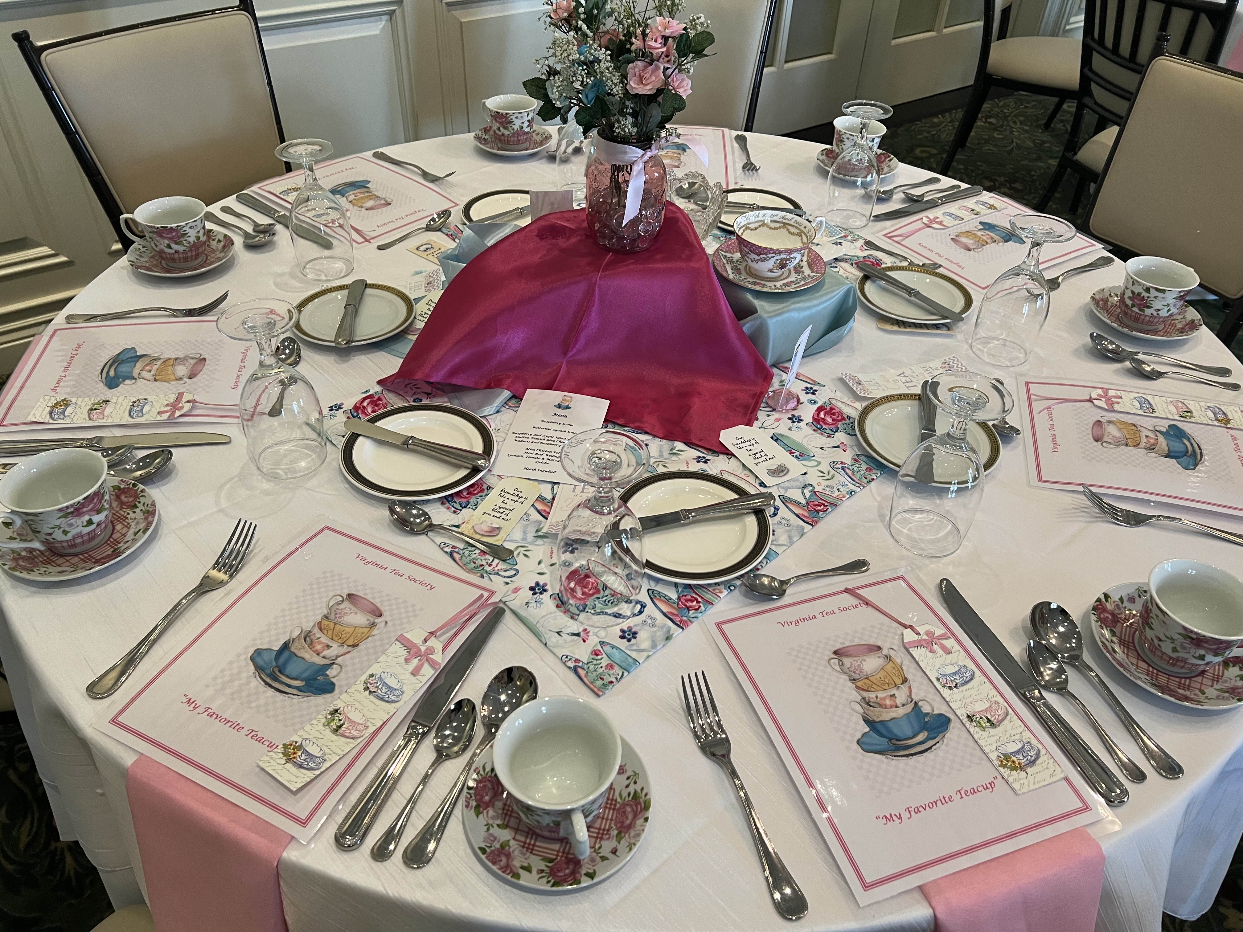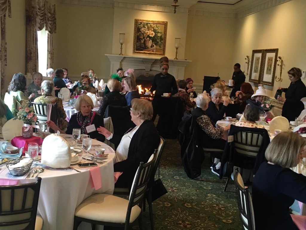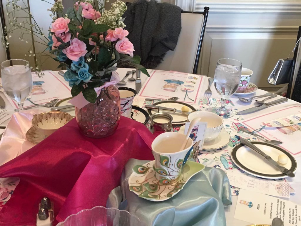 The Virginia Tea Society held its “My Favorite Teacup” tea on Saturday, March 5, 2022 from 1:00-3:00 p.m. at Princess Anne Country Club in the Princess Anne Room. Attendees brought their favorite teacups to display as part of the centerpieces for each table. Several attendees stood up to explain what their teacup meant to them and why it was so valuable. Anne-Taylor Cahill gave a presentation on antique and very valuable commemorative cups from her personal collection. Her Majesty Queen Elizabeth II (played by Nancy Jones) had a proclamation that she read at the end. Each attendee received a lovely cup and saucer to take home as a favor along with a placemat, bookmarks and printed tea quotes.