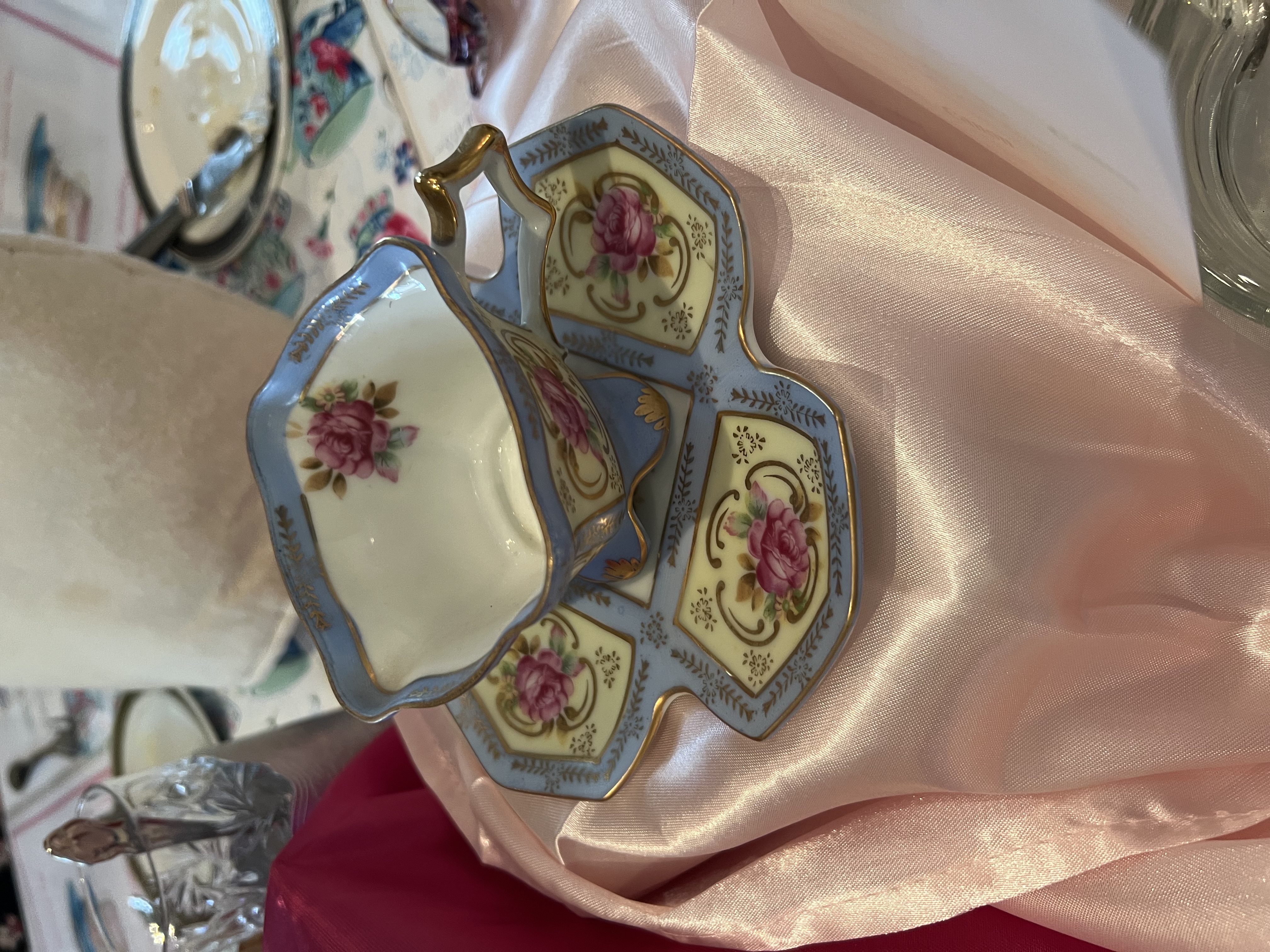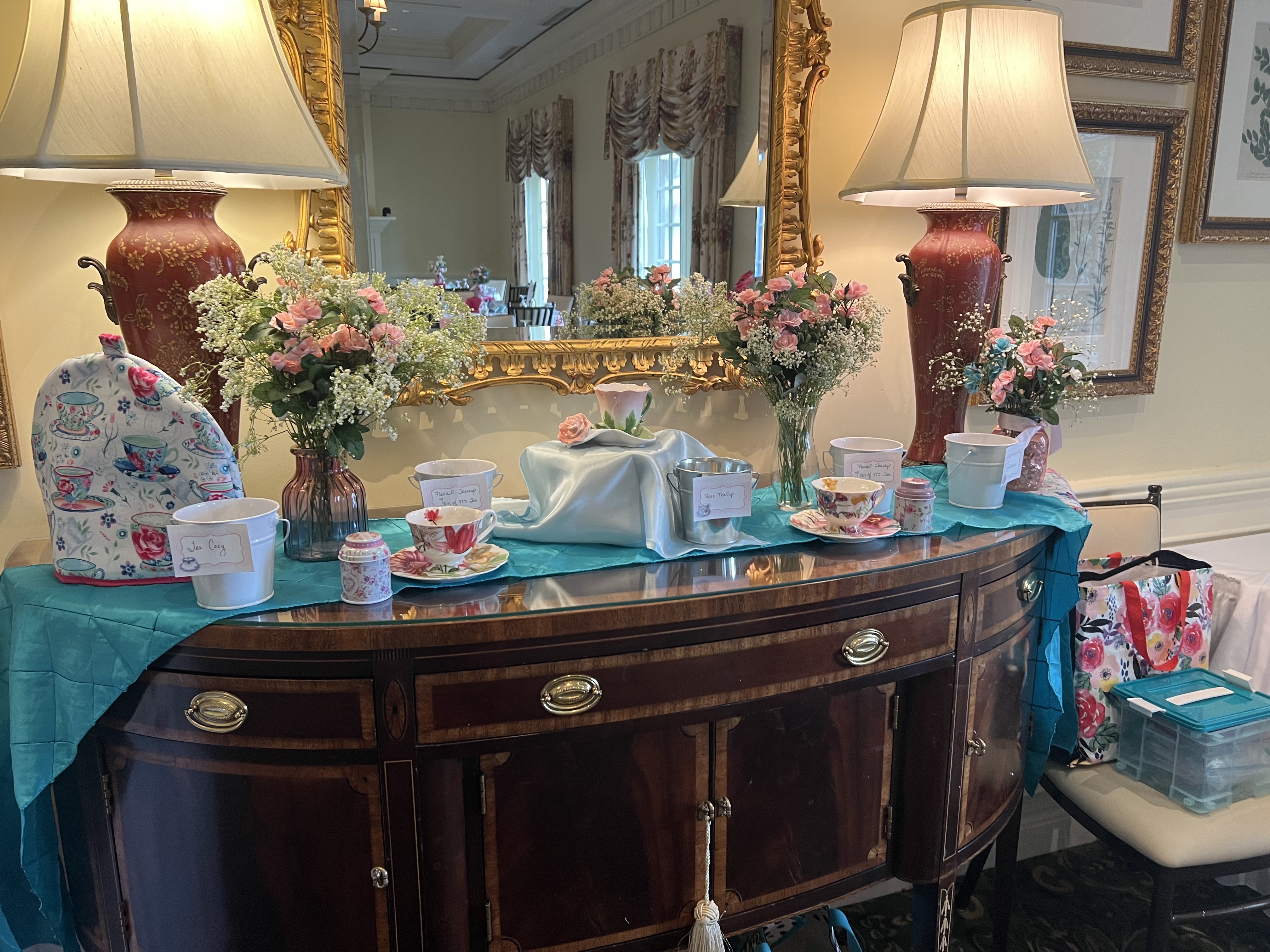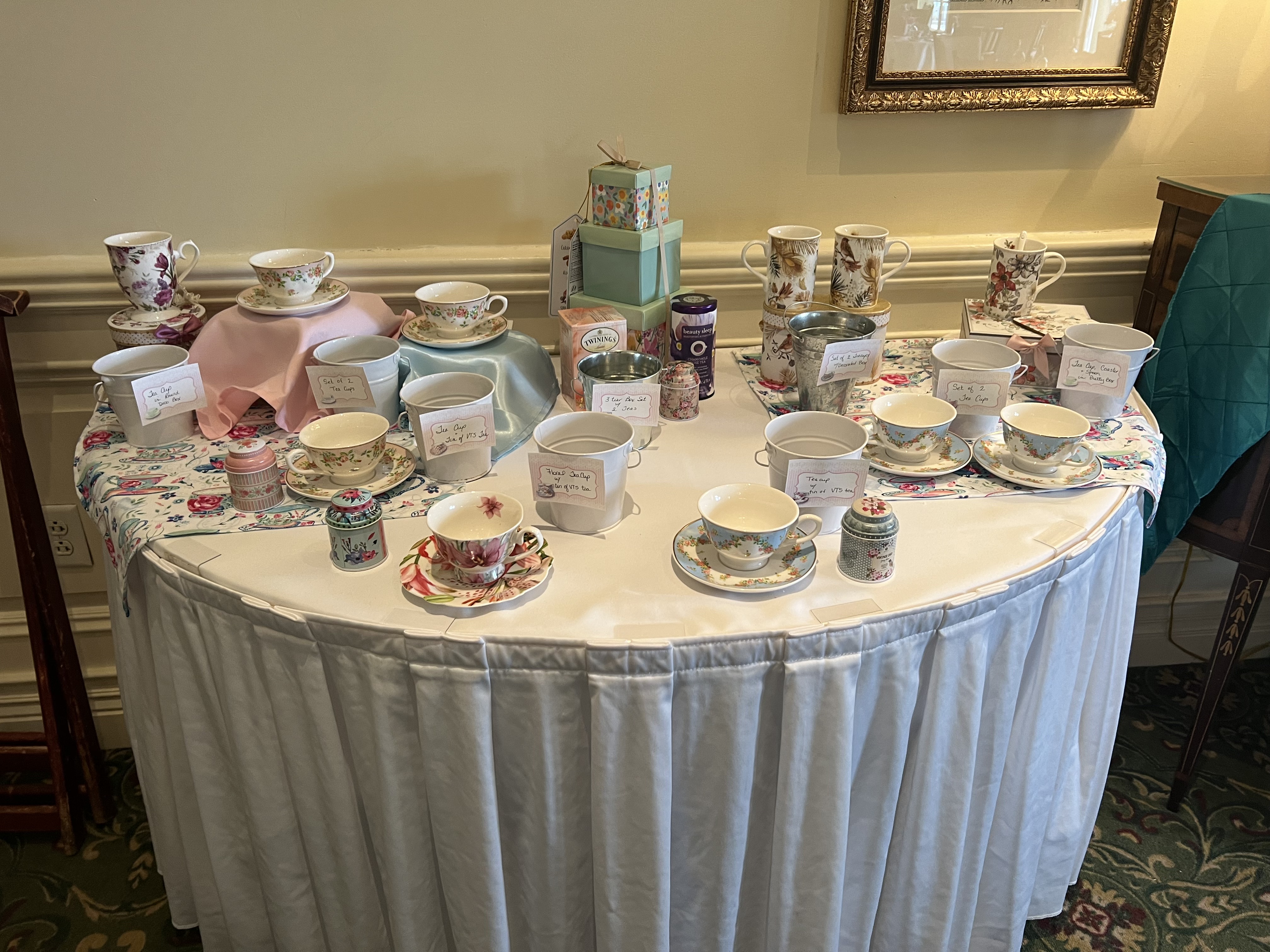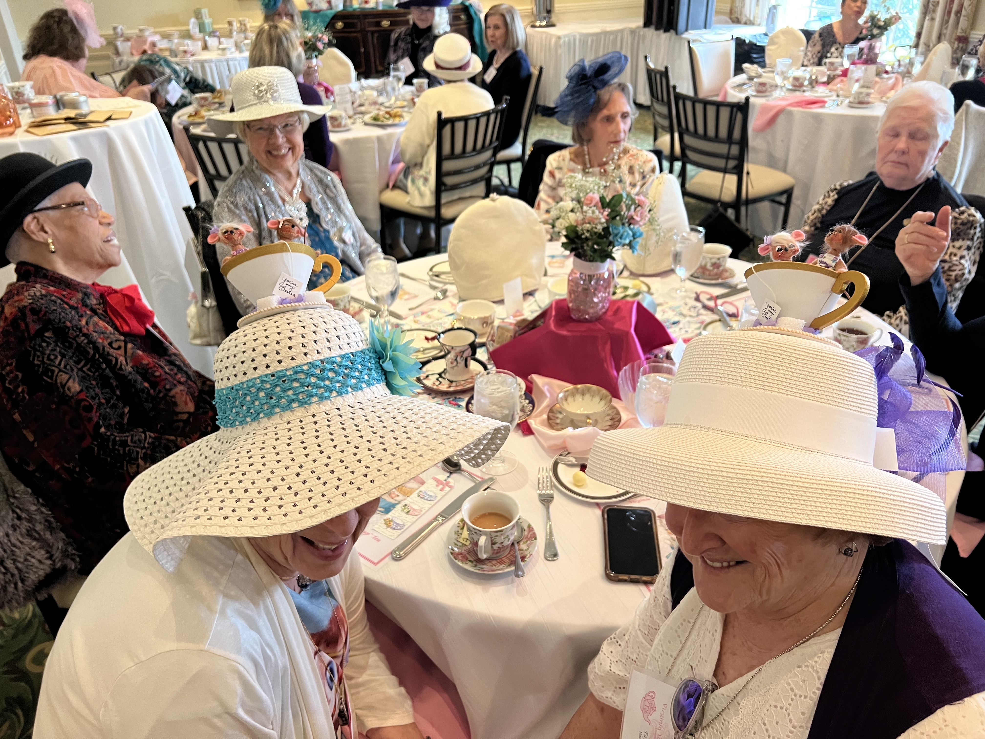 The Virginia Tea Society held its “My Favorite Teacup” tea on Saturday, March 5, 2022 from 1:00-3:00 p.m. at Princess Anne Country Club in the Princess Anne Room. Attendees brought their favorite teacups to display as part of the centerpieces for each table. Several attendees stood up to explain what their teacup meant to them and why it was so valuable. Anne-Taylor Cahill gave a presentation on antique and very valuable commemorative cups from her personal collection. Her Majesty Queen Elizabeth II (played by Nancy Jones) had a proclamation that she read at the end. Each attendee received a lovely cup and saucer to take home as a favor along with a placemat, bookmarks and printed tea quotes.